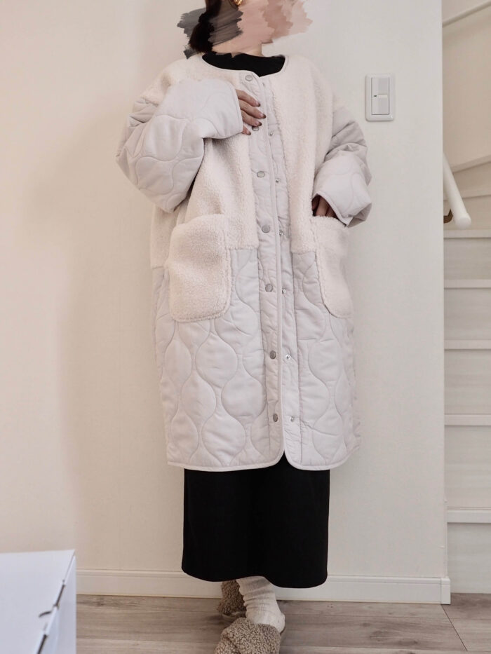 ボアとキルティングの切り替えデザインがおしゃれなコート✨